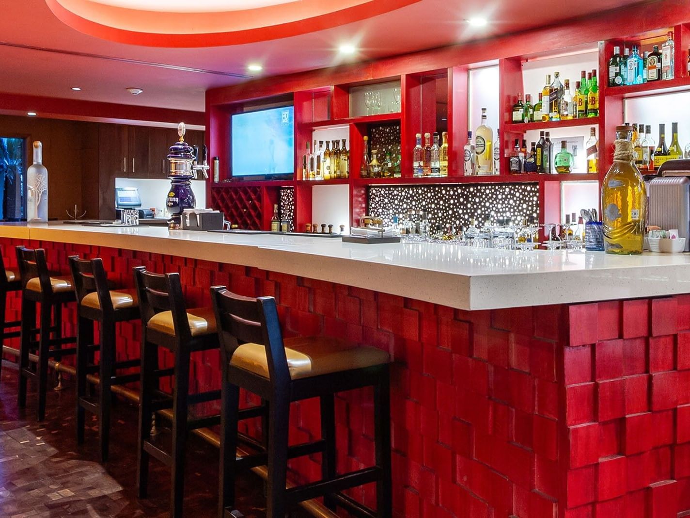 Ubicado a la entrada de María Bonita, el Lobby Bar ofrece deliciosos bocadillos ligeros acompañados de una amplia variedad de cócteles. Disfruta de los mejores eventos deportivos en un ambiente relajado y vibrante.