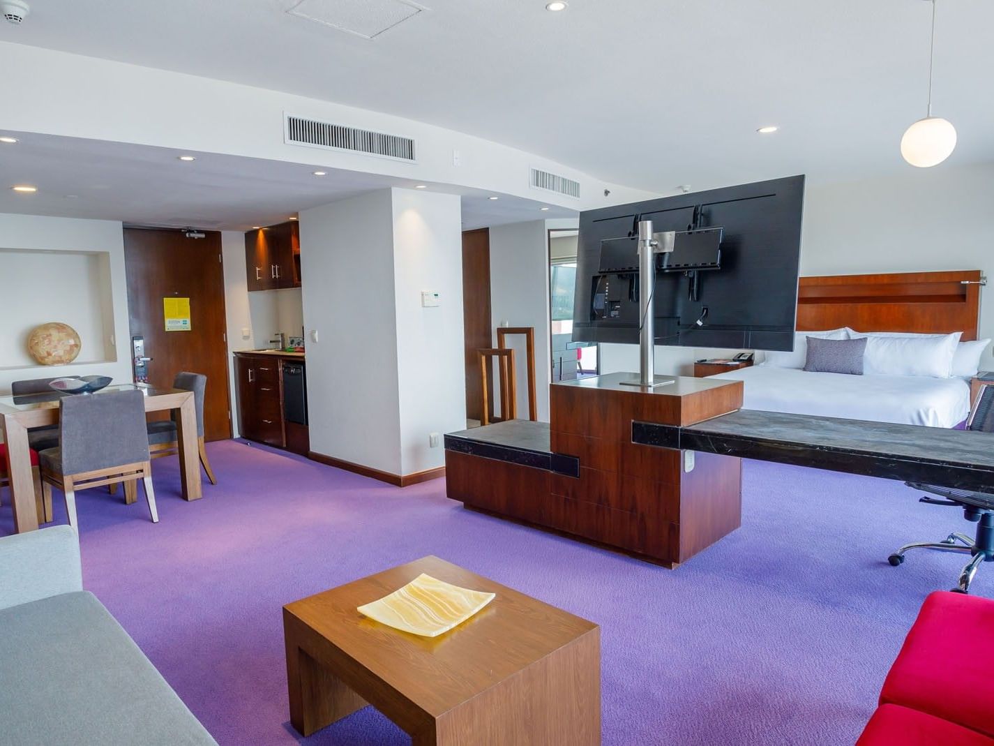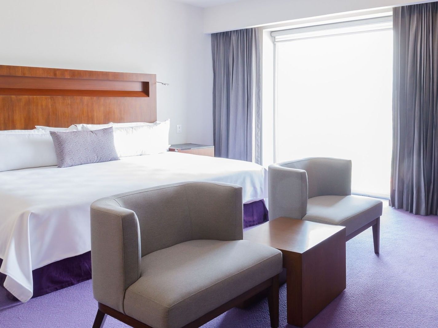 Diseñado con un estilo contemporáneo y un toque de influencia mexicana, nuestro hotel te brinda todo lo necesario para una estancia sin contratiempos. Mantente productivo en nuestro centro de negocios totalmente equipado y organiza eventos exitosos en nuestros amplios salones. Relájate en el gimnasio y spa, o descansa en tu habitación de diseño moderno con minibar, TV satelital y amenidades de lujo. Para una experiencia aún más especial, la Master Suite cuenta con un jacuzzi privado, ideal para disfrutar de una relajación absoluta.