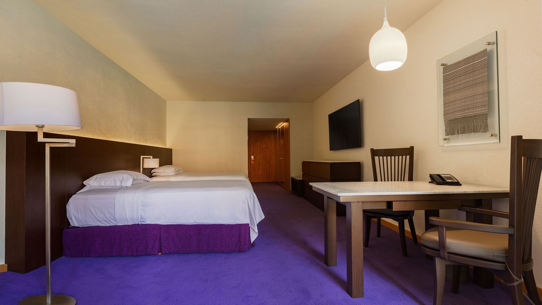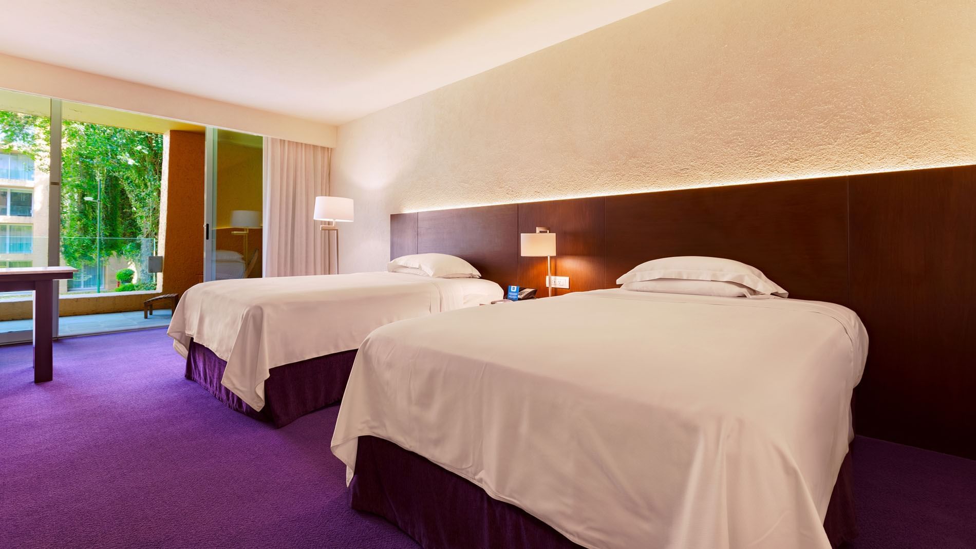 Diseñada para ofrecer confort y funcionalidad, la habitación De Lujo con dos camas dobles abarca 40 m2.
