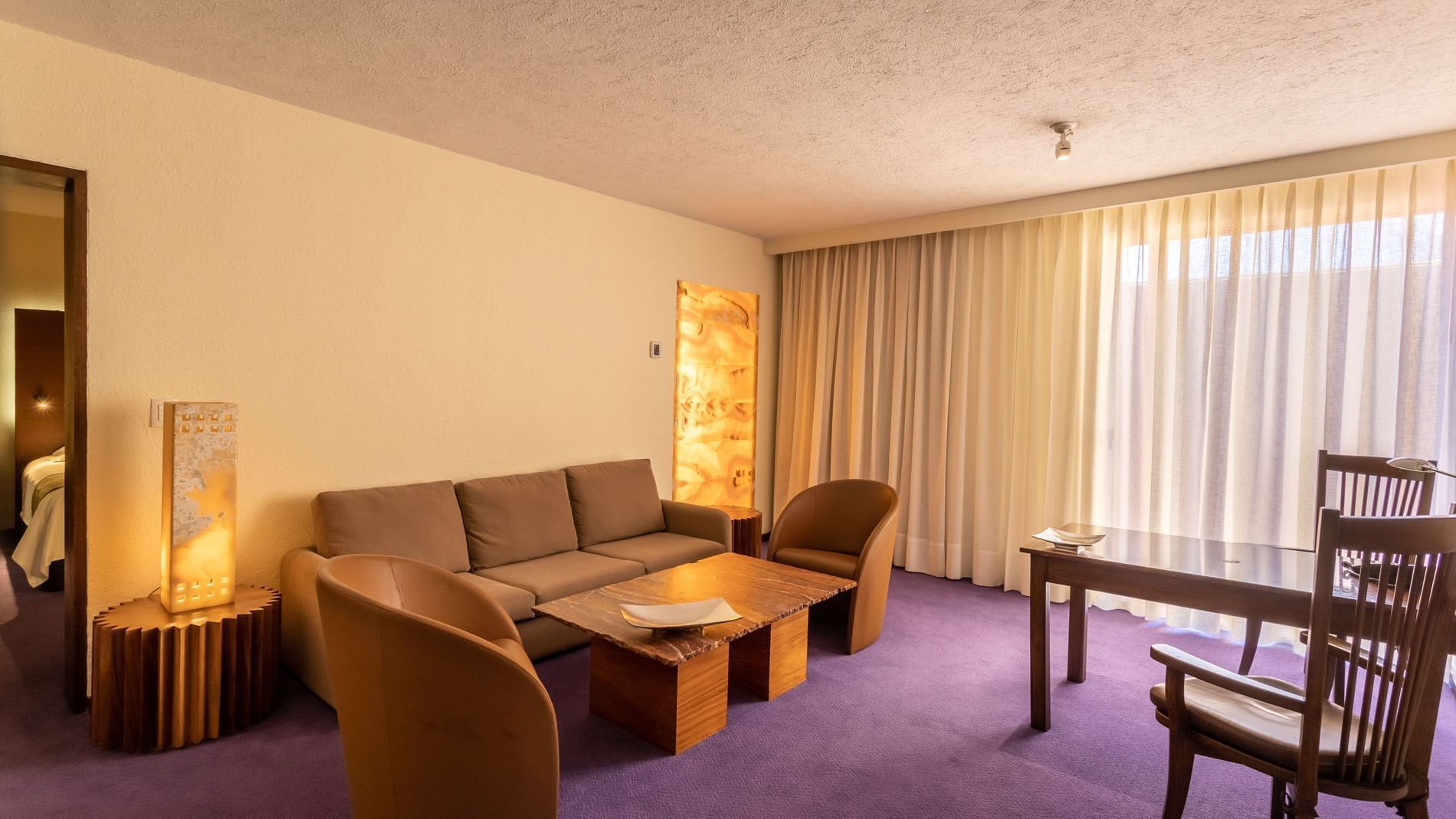 Esta Junior Suite de 110 m2; es ideal para quienes buscan un espacio más amplio y un toque de lujo. Equipada con aire acondicionado, clóset, plancha, tabla de planchar, un cómodo sillón y un escritorio con silla ejecutiva, combina perfectamente confort y funcionalidad.