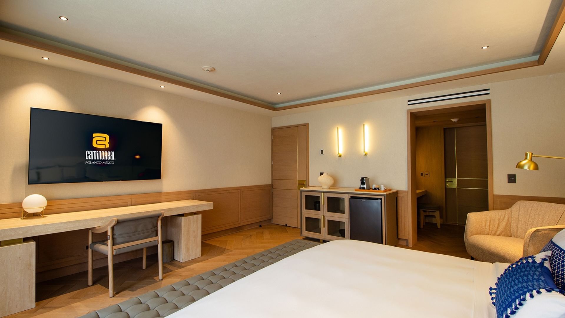 Pensada para quienes buscan un toque de lujo, la habitación Camino Real Club King Bed ofrece acceso al piso ejecutivo y un cómodo espacio de 42 m2.