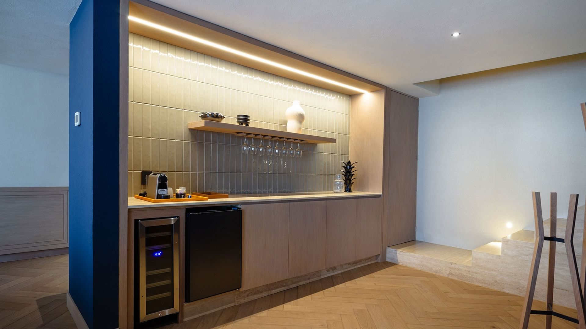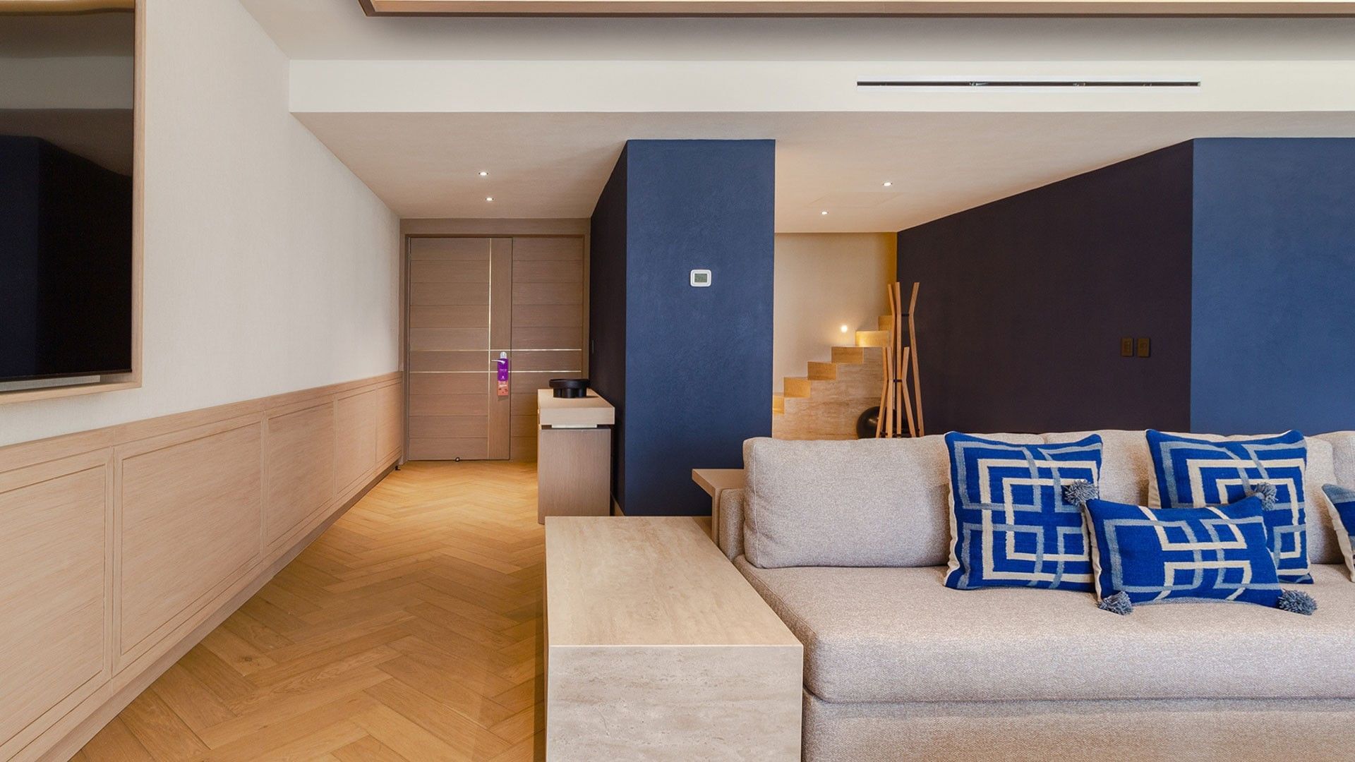 La Suite Virreyes de 2530 ft² es un lujoso espacio de dos niveles que cuenta con alberca privada y un jardín exclusivo Ofrece aire acondicionado, chaise longue, área de trabajo, minibar, cafetera y caja fuerte digital.