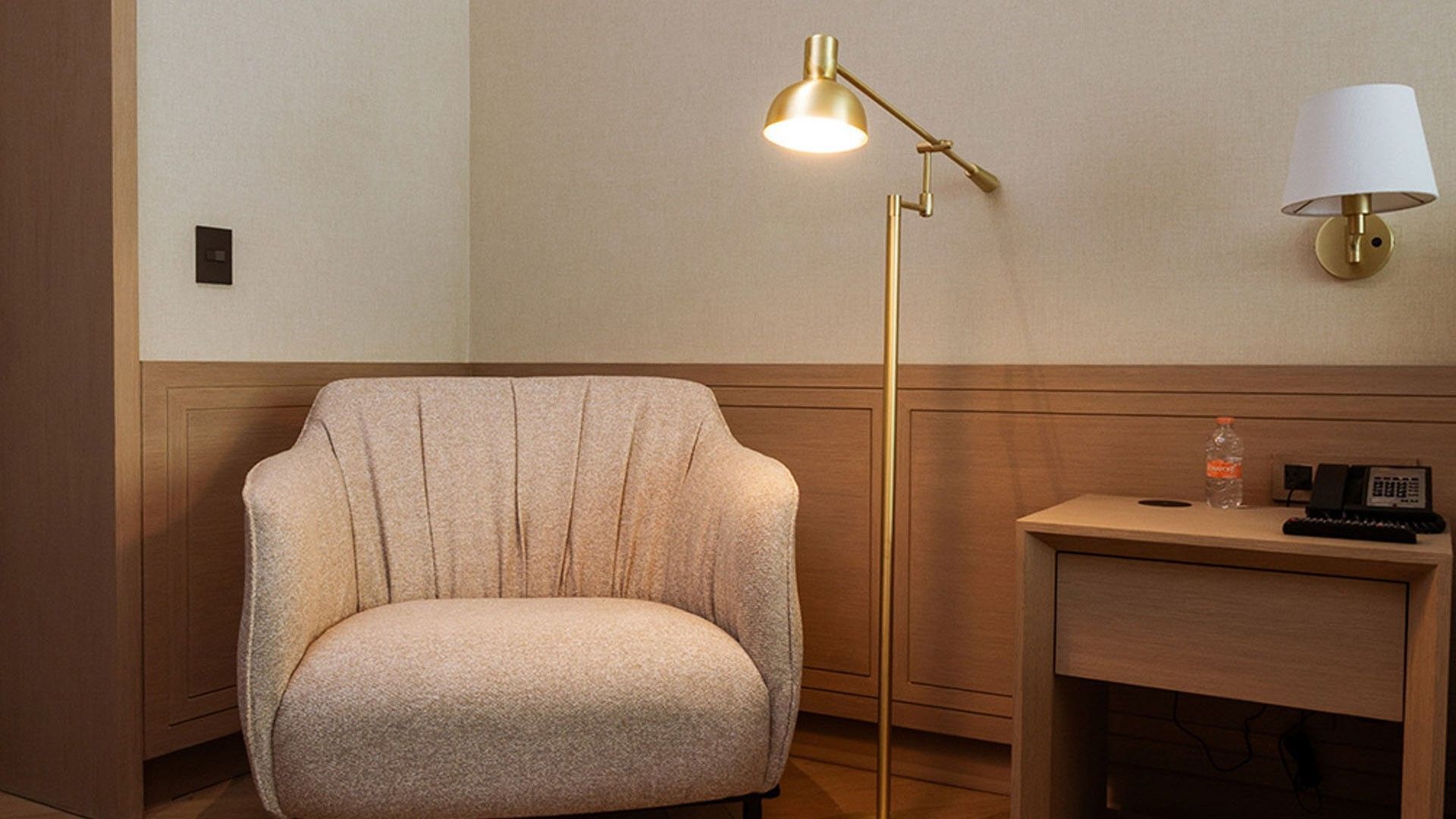 Esta elegante habitación de 42 m2; ofrece todas las características de la categoría De Lujo. Perfecta para quienes valoran tanto el estilo como el confort, cuenta con aire acondicionado, clóset, plancha, tabla de planchar, sillón y un escritorio con silla ejecutiva.