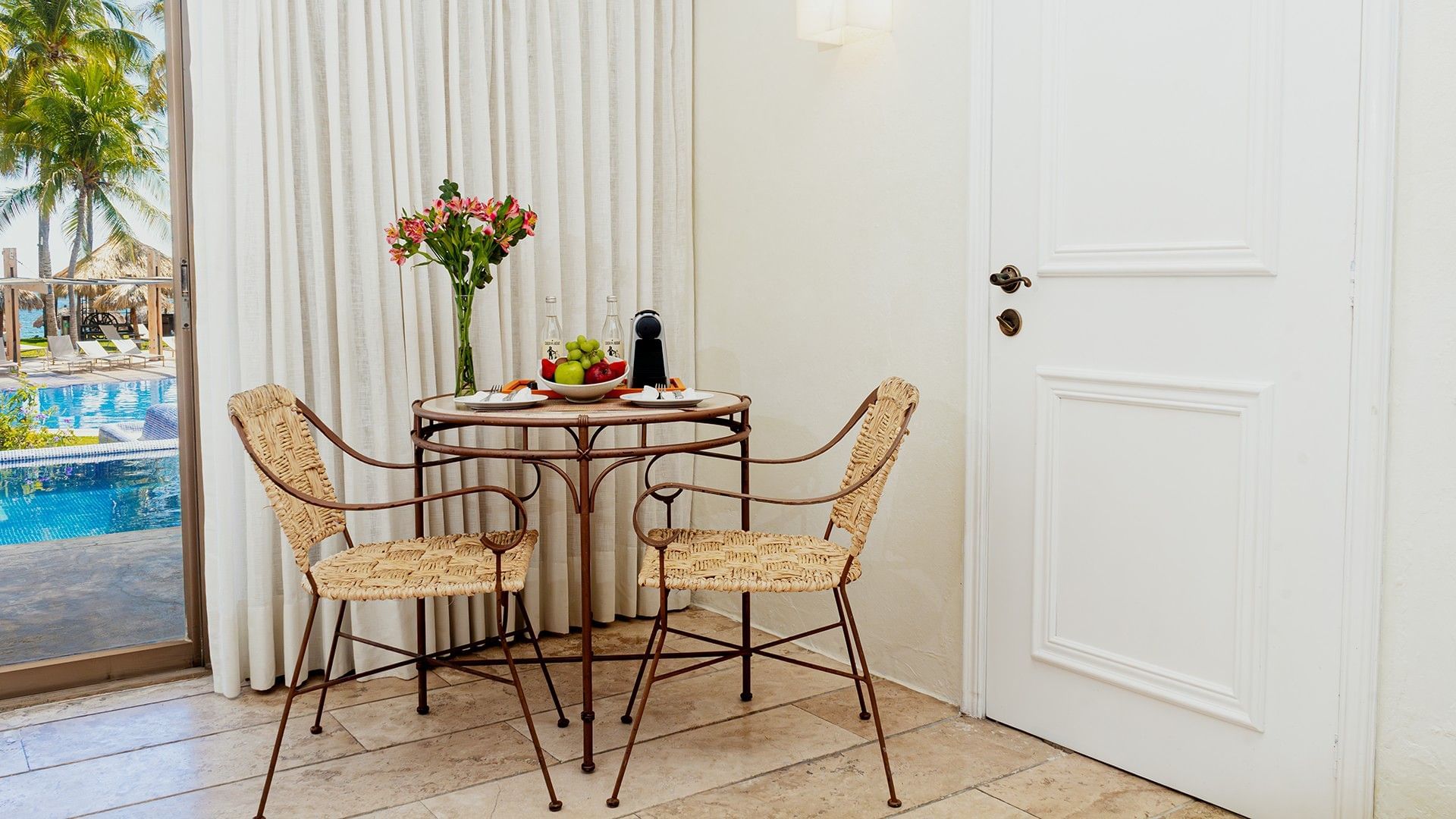 Esta amplia habitación de 52 m² ofrece dos camas dobles y el placer de contar con una alberca privada. Un balcón o terraza complementa la experiencia con vista al mar. En su interior, encontrarás aire acondicionado, un clóset espacioso, plancha y tabla de planchar. Entre sus amenidades destacan caja fuerte digital, minibar y una televisión de pantalla plana de 36 pulgadas con canales satelitales. El baño está equipado con tina, secadora de cabello y exclusivos artículos de cuidado personal gratuitos. Para tu tranquilidad, dispone de un sistema contra incendios, detectores de humo, mirilla óptica y doble cerradura. Además, se pueden solicitar camas adicionales y cunas sin costo, sujetas a disponibilidad.