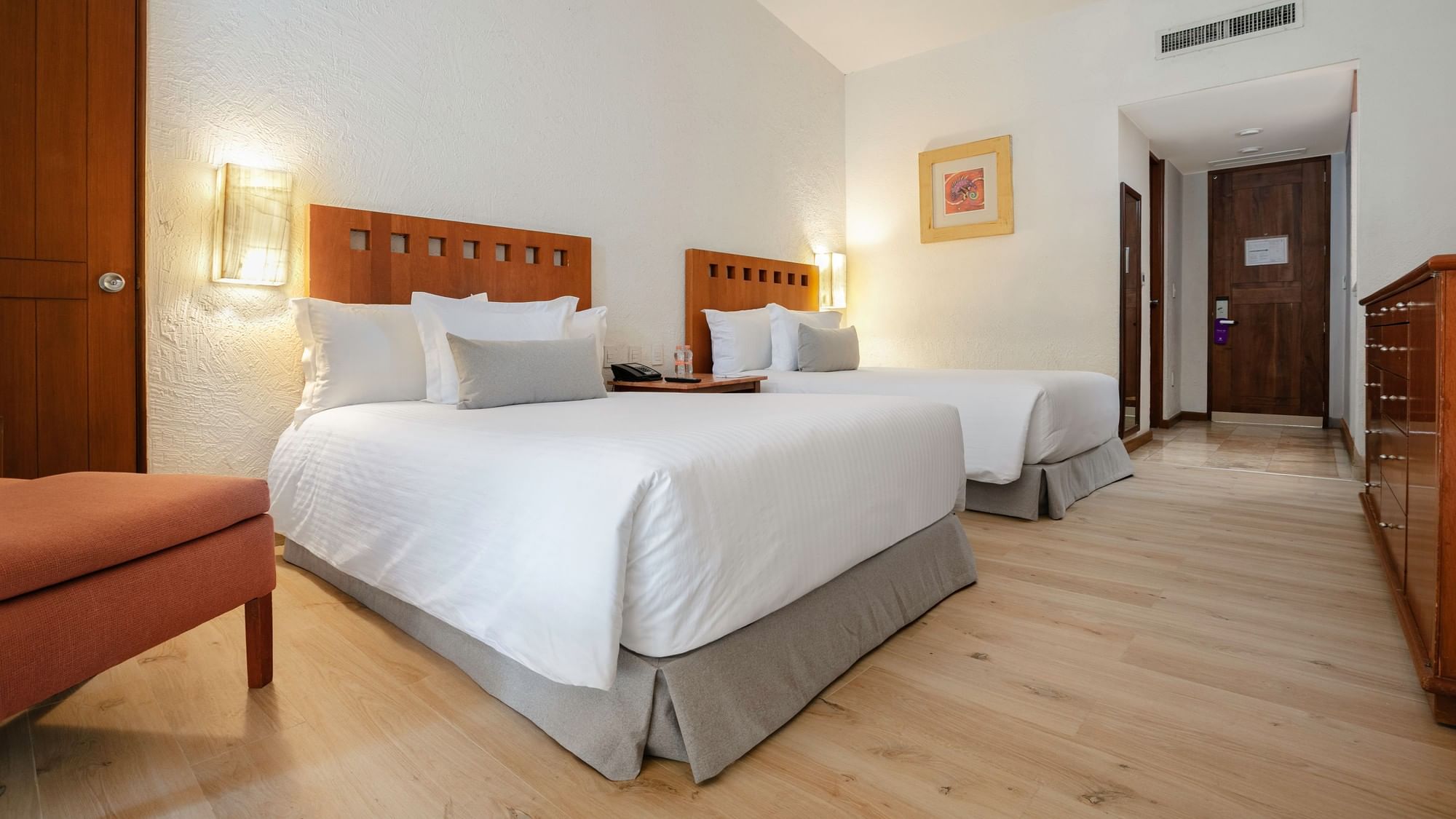 For a touch of luxury, our Camino Real Club Executive accommodations feature a private hot tub, and our spacious suites, such as the Presidential Suite and Embajadores Suite, offer additional comfort with whirlpool baths and elegant living spaces.