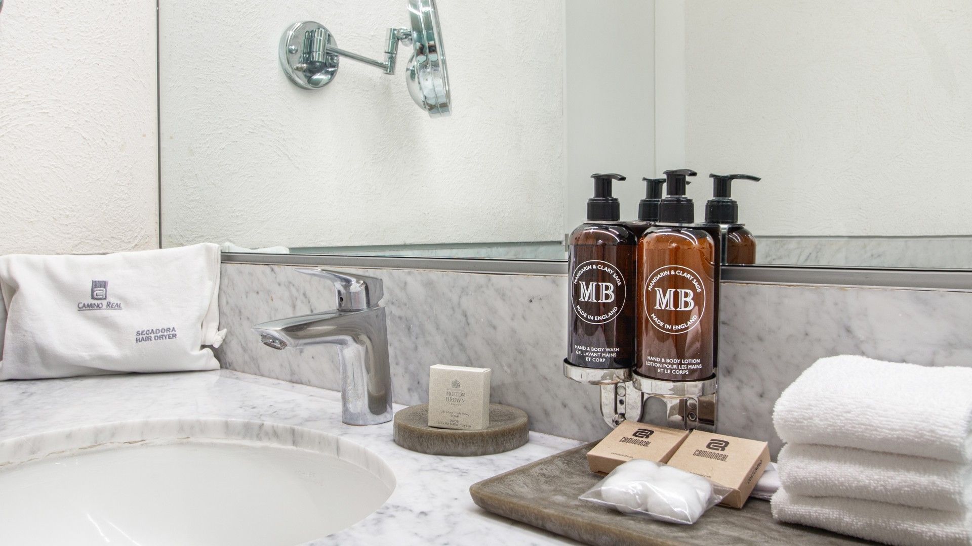 Discover the full range of our beautifully designed rooms and suites, each thoughtfully crafted to provide a unique and luxurious experience. From our spacious Deluxe rooms to our exclusive Camino Real Club rooms with lounge access, and our expansive suites with private gardens and even a private swimming lane, we have the perfect space to make your stay unforgettable.