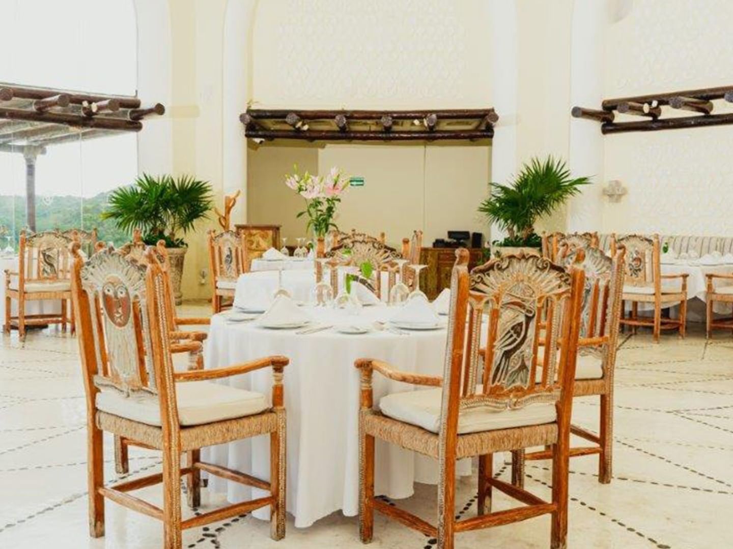 Disfruta exquisitas especialidades en mariscos y platillos gourmet en un ambiente relajado junto a la alberca.