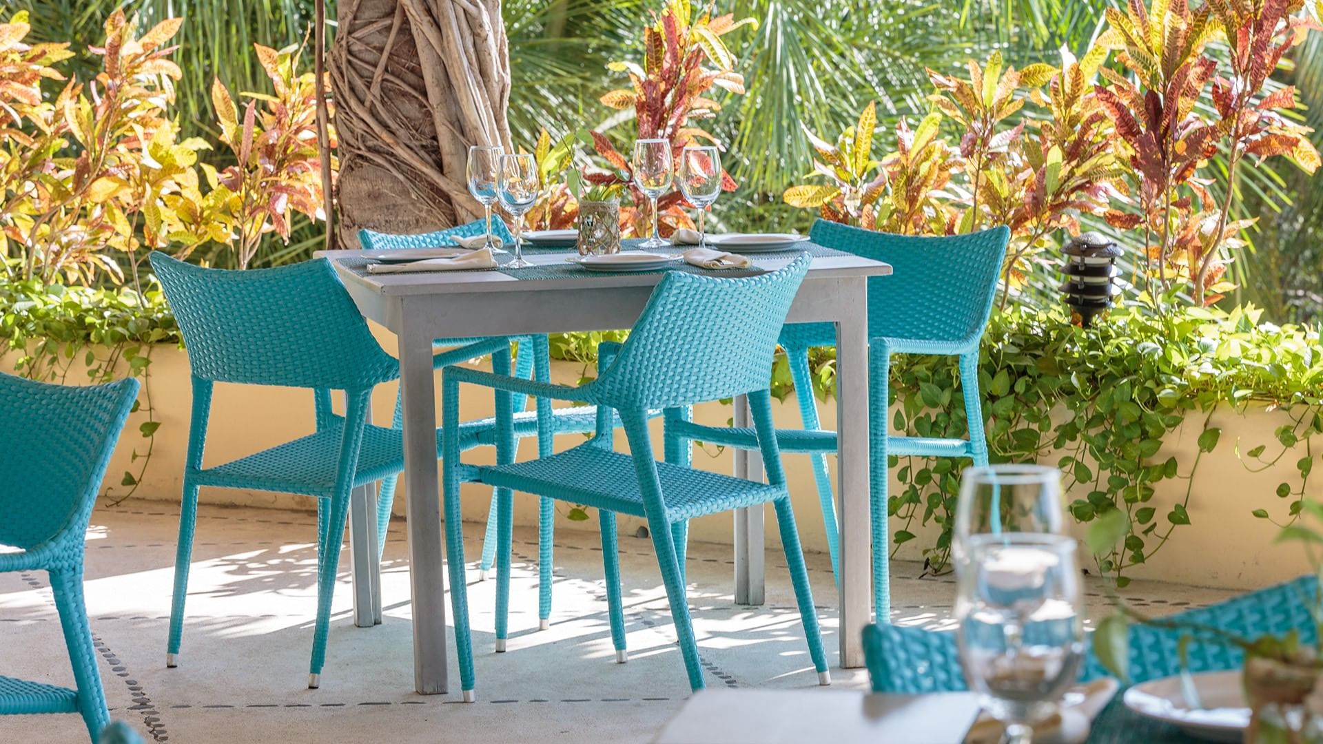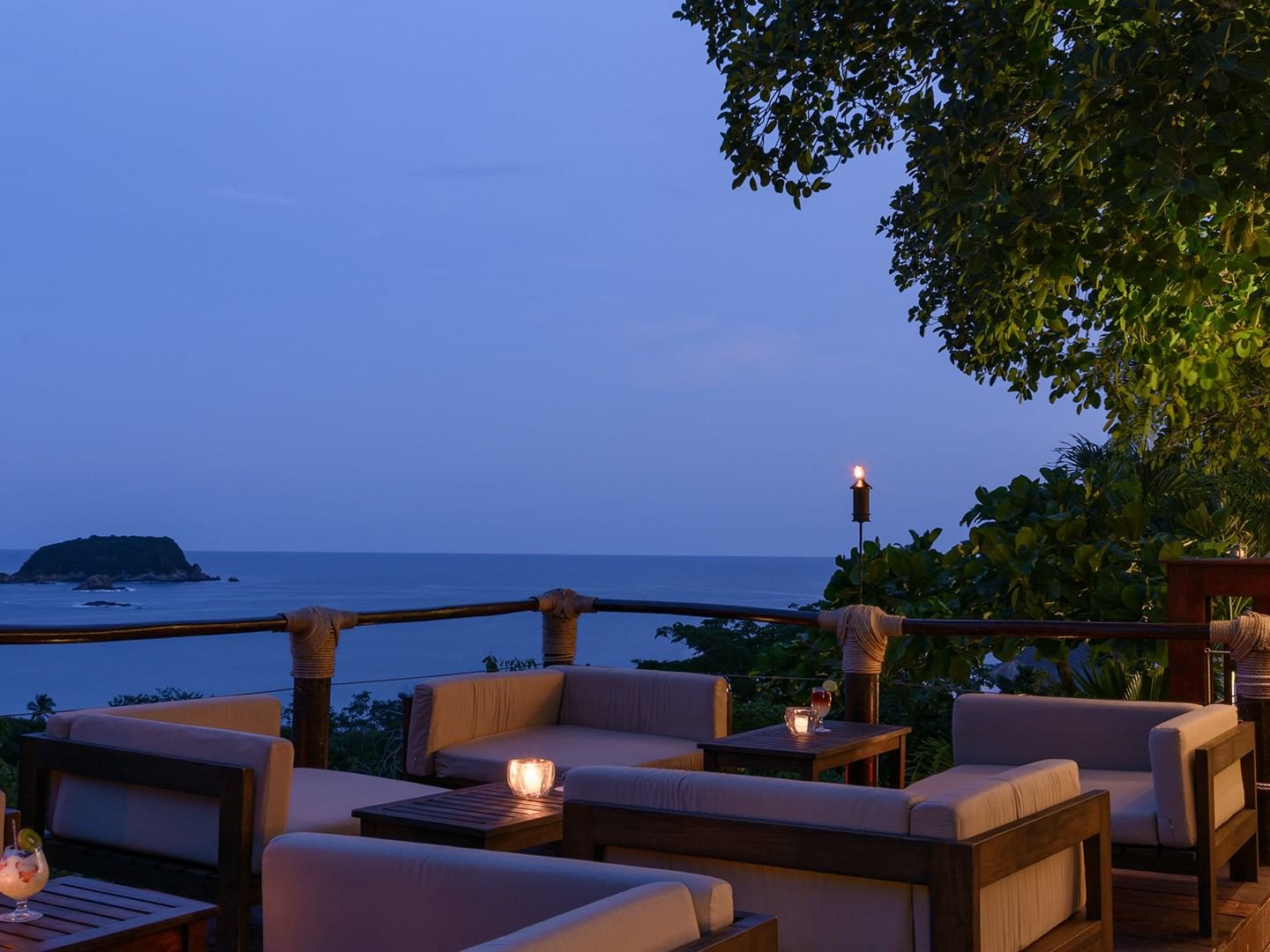 Ubicado en el punto más alto del hotel y de la bahía, Sky Lounge es un bar al aire libre construido alrededor de un árbol majestuoso, con vistas impresionantes al mar y las montañas.
