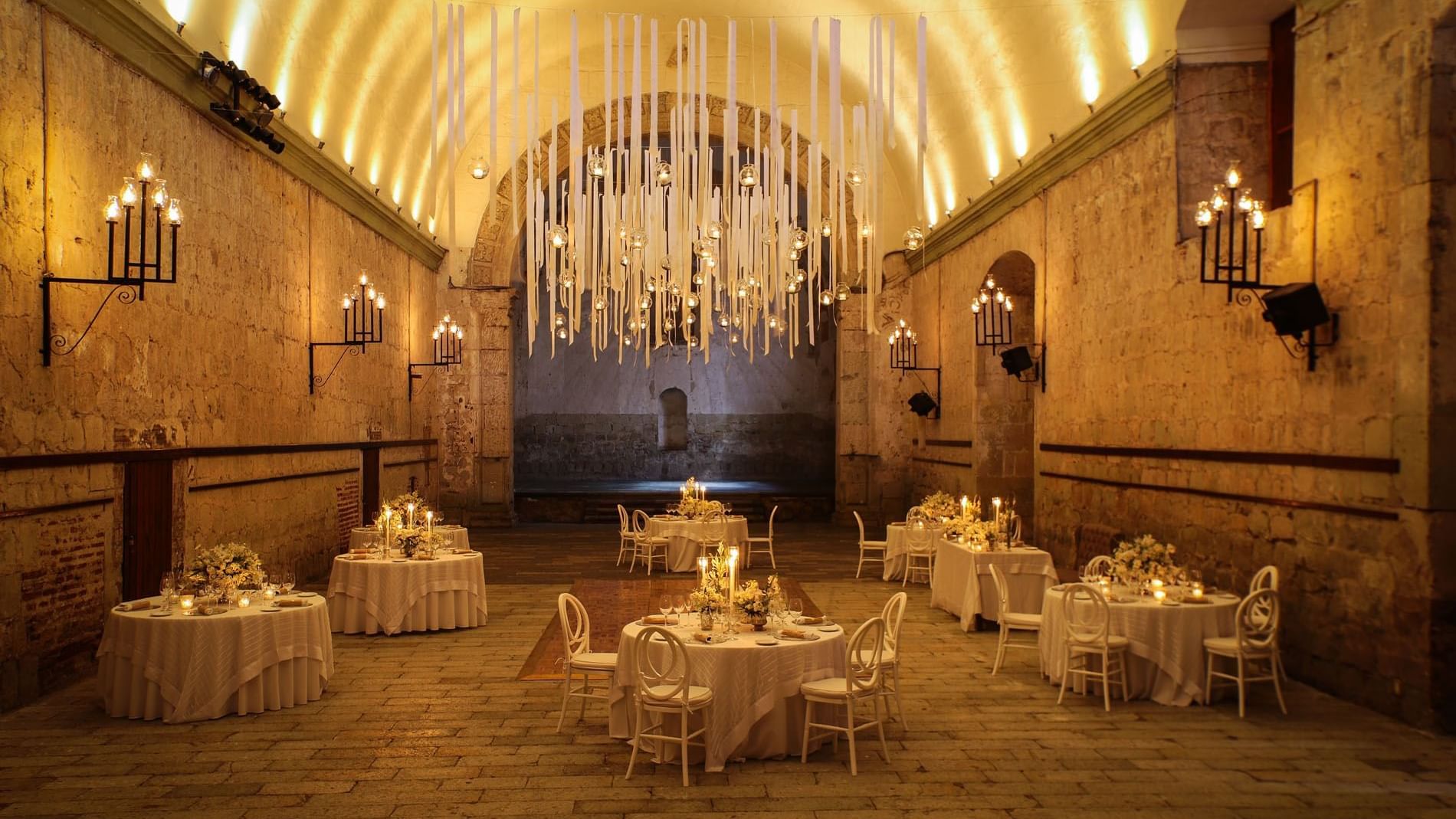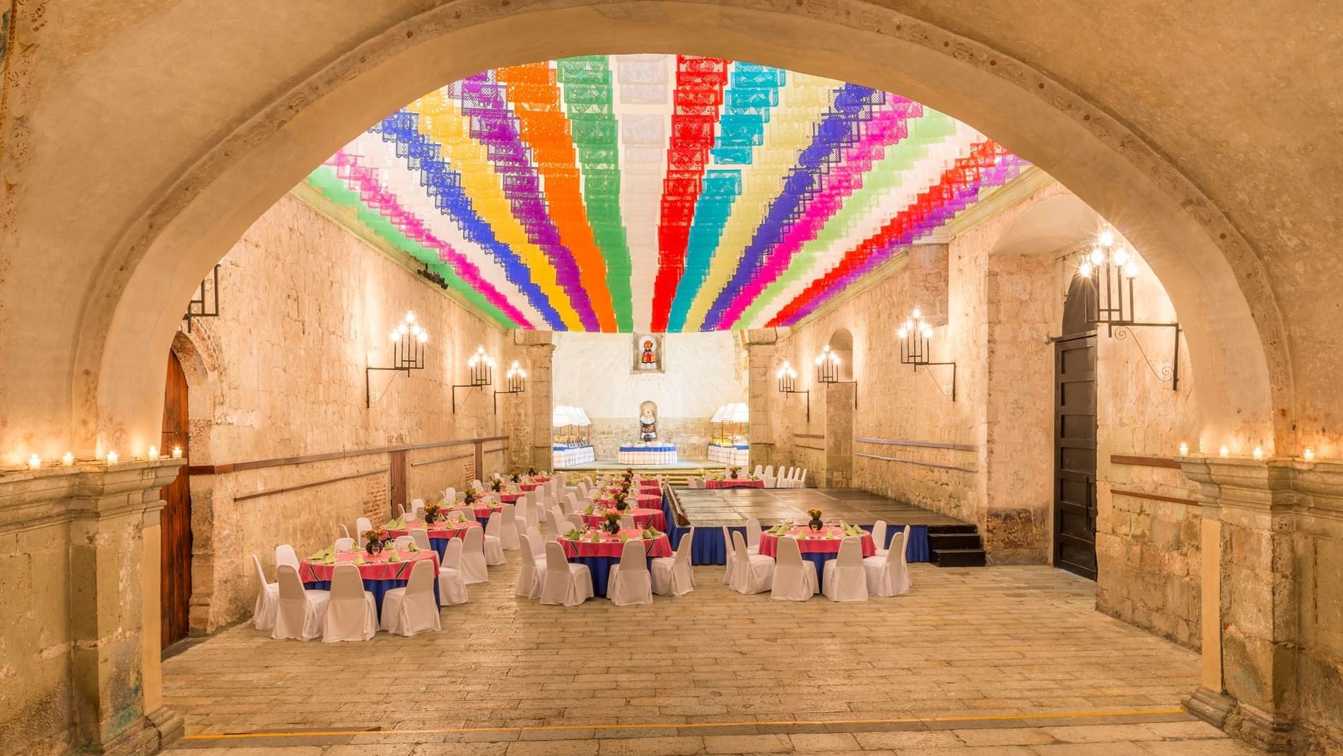 El Salón Capilla de Quinta Real Oaxaca es un espacio verdaderamente único, ubicado dentro de un antiguo convento del siglo XVI. Con una fusión impecable entre la elegancia colonial y las comodidades modernas, este majestuoso salón es ideal para bodas, reuniones corporativas y eventos sociales. Sus altos techos abovedados, muros de piedra y atmósfera atemporal crean un entorno inigualable que eleva cualquier celebración. Además, cuenta con Wi-Fi de alta velocidad, sistemas audiovisuales y opciones de iluminación personalizadas para adaptarse a las necesidades de tu evento y hacer de cada momento algo increíble.