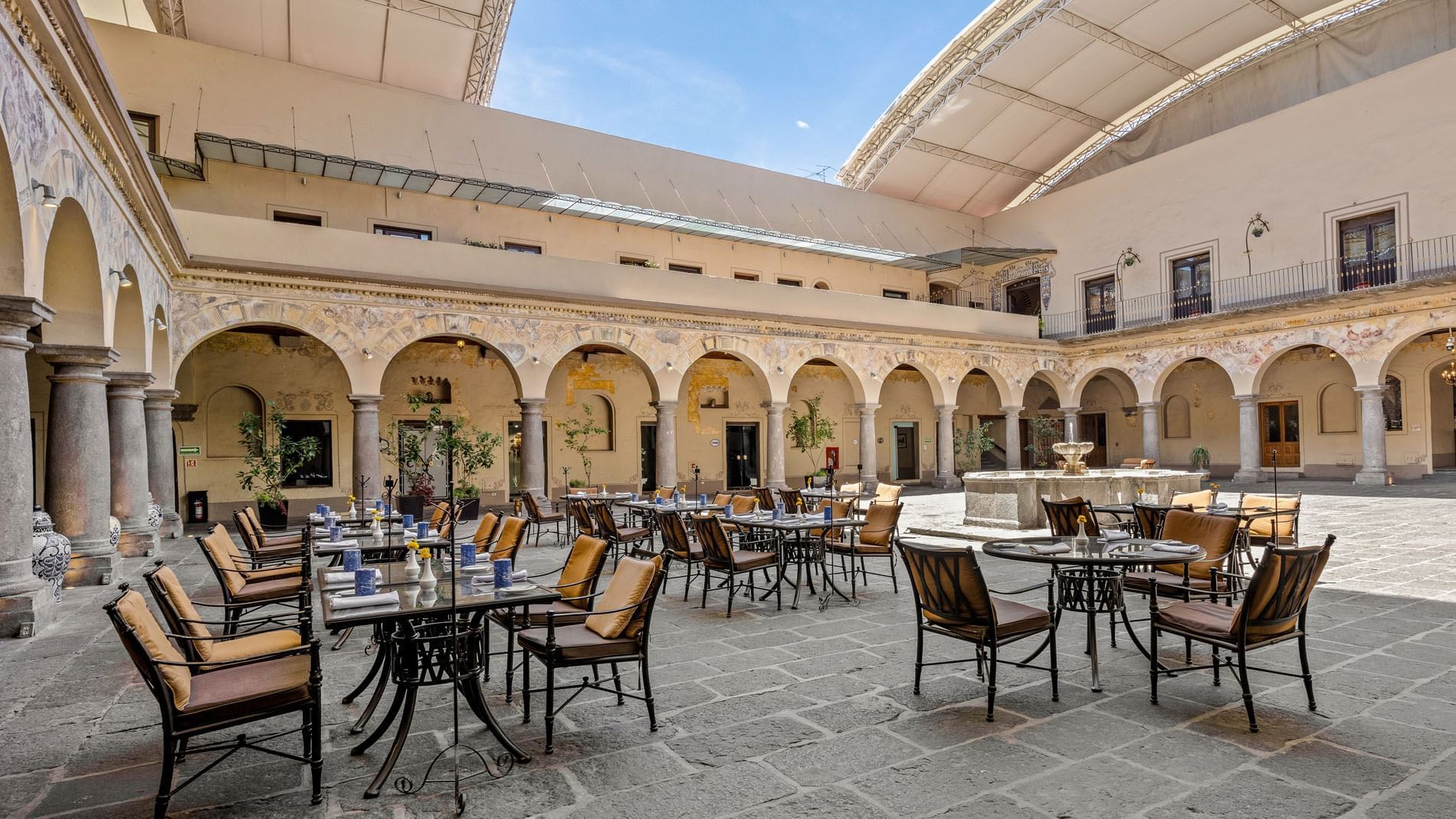 Vive la belleza atemporal de Quinta Real Puebla, donde los interiores coloniales y el encanto histórico se fusionan con el lujo contemporáneo. Ubicado en un convento del siglo XVI cuidadosamente restaurado, el hotel conserva majestuosos arcos, muros de piedra originales y delicados detalles en herrería que enmarcan una atmósfera de elegancia y distinción. Explora nuestra galería y descubre por qué Quinta Real Puebla es uno de los hoteles más impresionantes de la región.