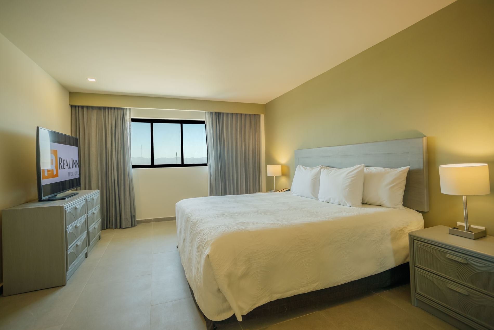 Lleva tu experiencia a otro nivel en esta habitación de 23 m2; equipada con cama king size, decoración elegante y detalles de confort superior. Disfruta de un ambiente climatizado, un área de trabajo funcional con silla ejecutiva y amenidades modernas como caja fuerte digital, reloj despertador y televisión de pantalla plana de 32” con señal satelital. El baño, de estilo contemporáneo, cuenta con regadera, secadora de cabello, espejo para maquillaje y amenidades de baño premium. Para tu tranquilidad, la habitación incluye sistema contra incendios, detectores de humo, rociadores, mirilla óptica y doble cerradura. También puedes solicitar cama extra o cuna para una estancia más cómoda.