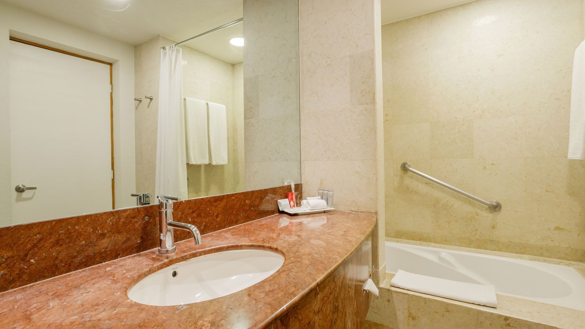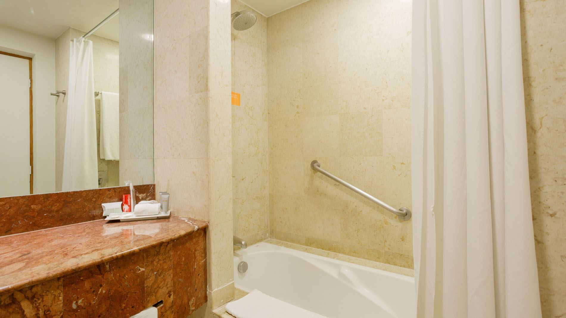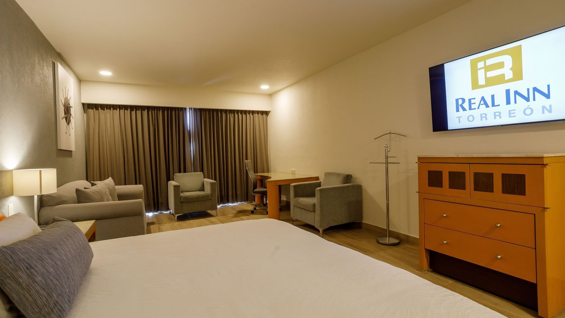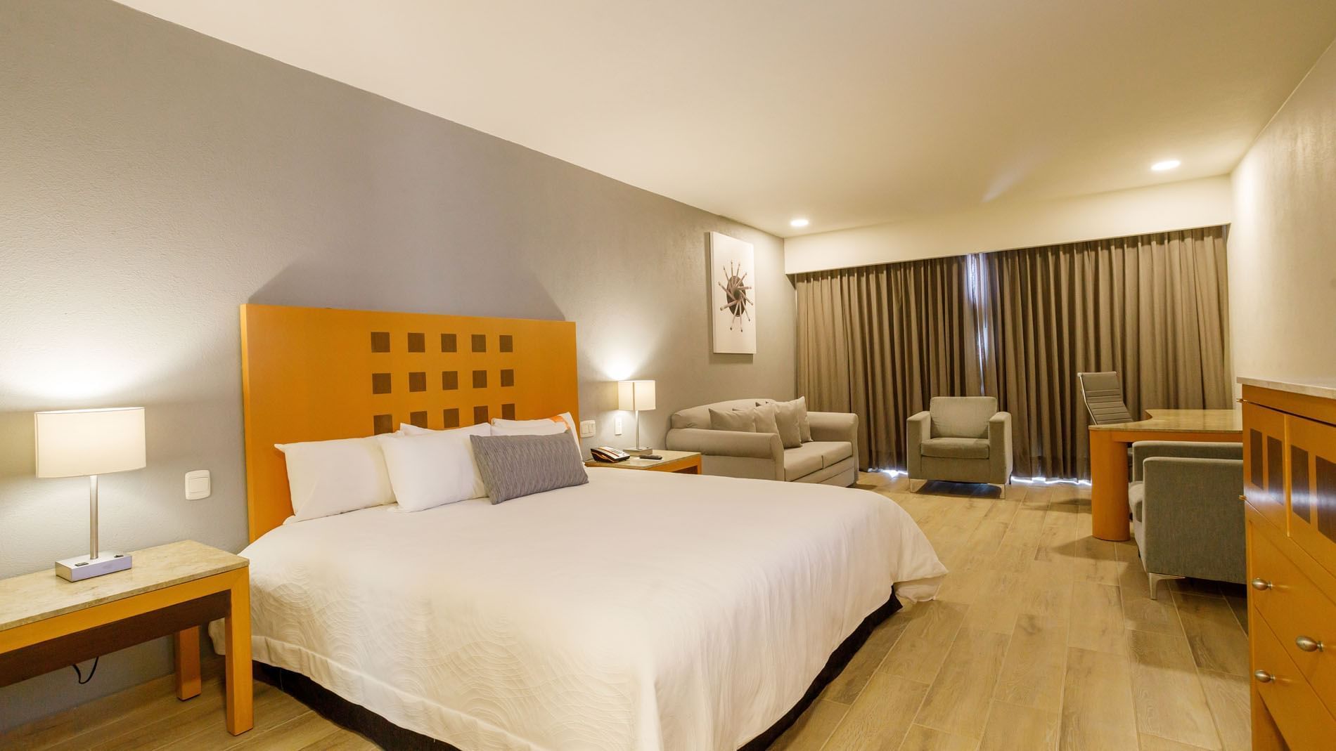 Amplia Junior Suite de 39 m2; que cuenta con una cama King Size y relajantes vistas al jardín. La habitación ofrece aire acondicionado, caja fuerte digital, clóset, plancha, tabla para planchar, escritorio con silla ejecutiva y un sofá cama para mayor comodidad. El baño está equipado con regadera, secadora de cabello, espejo de aumento, amenidades de lujo, pantuflas y bata. La habitación cuenta con detectores de humo, aspersores y doble caja fuerte para tu seguridad. Cama adicional disponible con costo extra; cunas gratuitas sujetas a disponibilidad. El horario de Check-in es a las 15:00 h y el de Check-out a las 12:00 h.