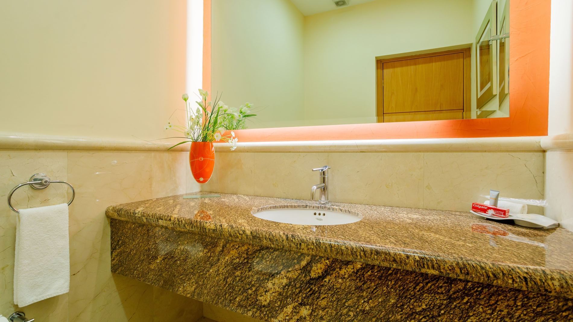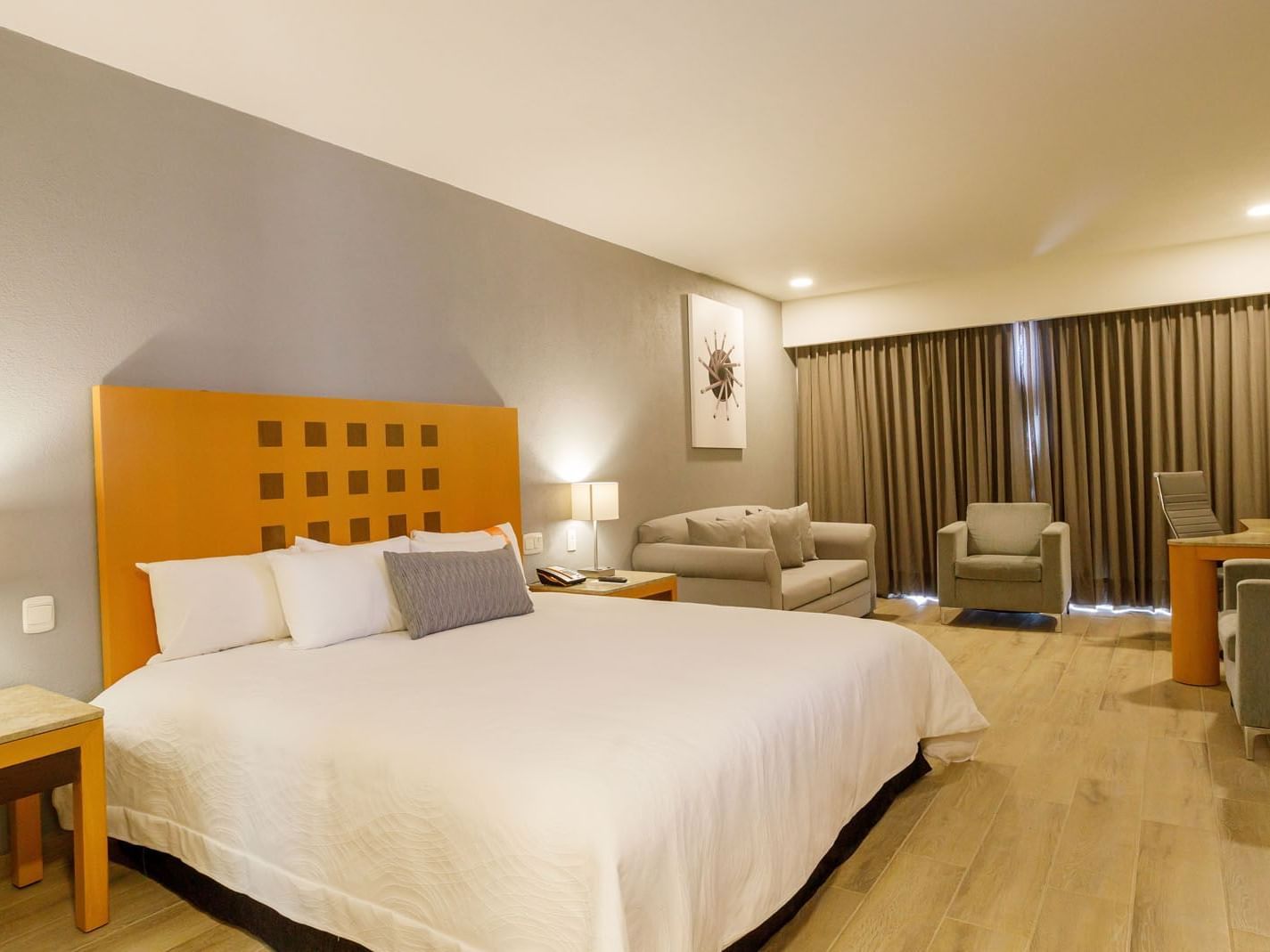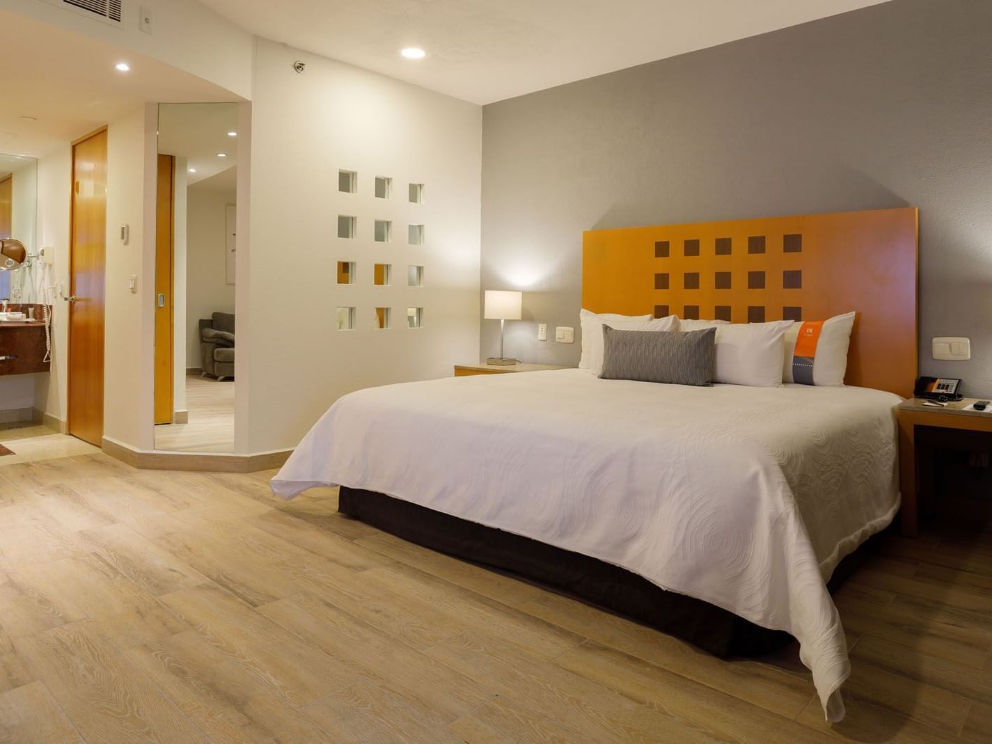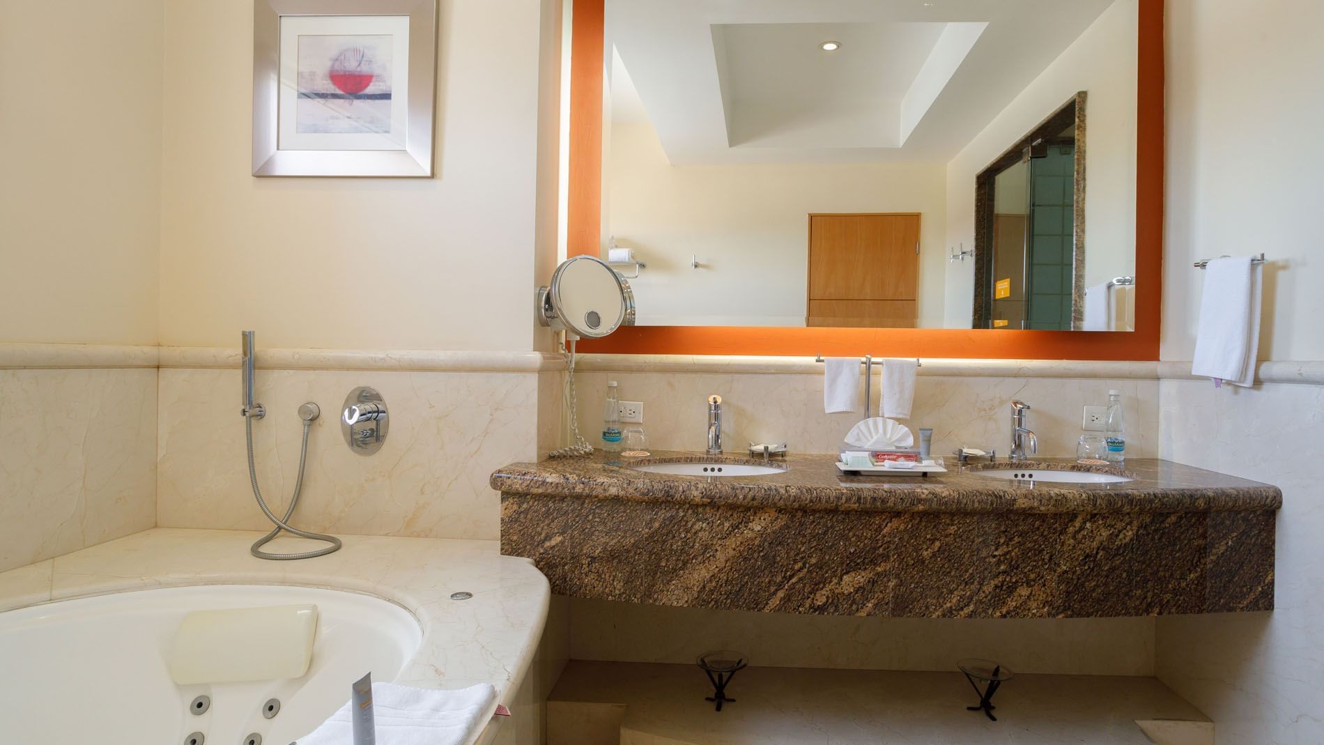 Esta amplia suite de 108 m2; ofrece una cama King Size y una espectacular vista al jardín. Está equipada con aire acondicionado, caja fuerte digital, clóset, plancha, tabla para planchar, escritorio con silla ejecutiva, área de descanso, comedor para 12 personas y sala de estar con centro de entretenimiento. El baño completo ofrece tina de hidromasaje, secadora de cabello, espejo de aumento, amenidades de lujo, pantuflas y bata. También incluye minibar para mayor confort. La suite está equipada con sistema contra incendios, detectores de humo, aspersores y doble caja fuerte. Cama adicional disponible con costo extra; cunas gratuitas sujetas a disponibilidad. El horario de Check-in es a las 15:00 h y el de Check-out a las 12:00 h.