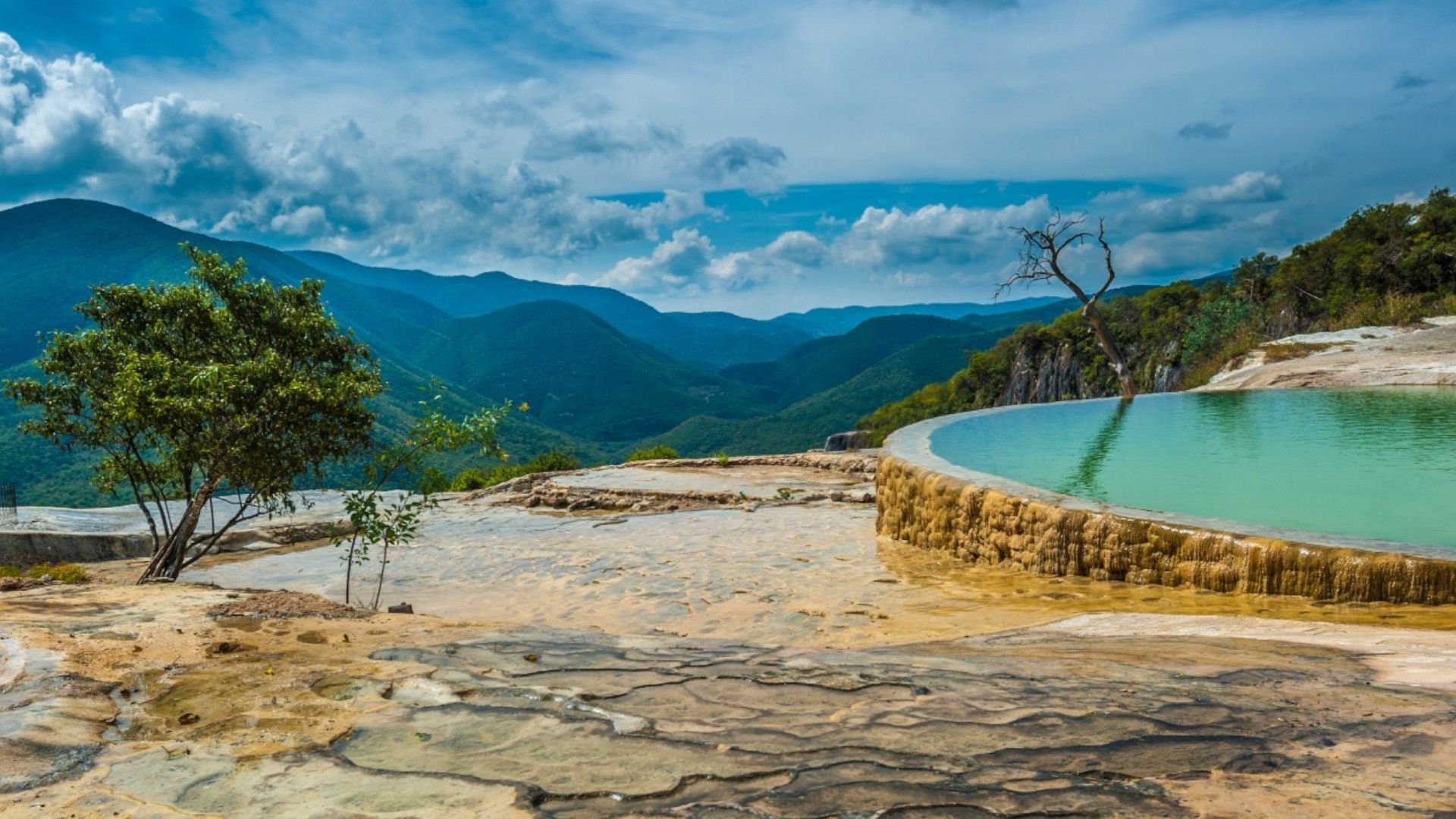 En tu camino hacia Huatulco, haz una parada en Hierve el Agua, una maravilla natural donde manantiales de agua carbonatada crean formaciones rocosas que se asemejan a cascadas petrificadas. Disfruta de un refrescante baño en las piscinas naturales y admira el impresionante paisaje montañoso que rodea este sitio único.
